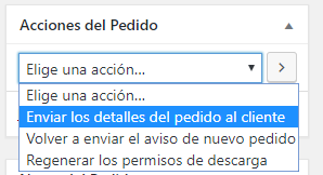 Justo al lado de este resumen, tenemos un cuadro de acciones que nos permitirá reenviar los correos al cliente, en caso que no los haya recibido, se hayan ido a SPAM, o si por lo que fuera, no se hubieran enviado correctamente.
