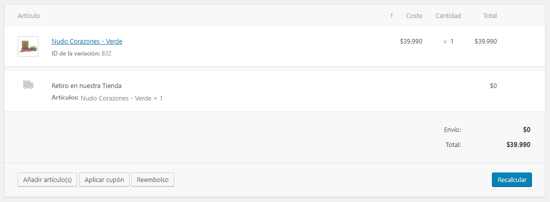 - Mensaje del cliente: Nota opcional que el cliente puede haber dejado en el momento de hacer el pedido, en el checkout (página de pago).