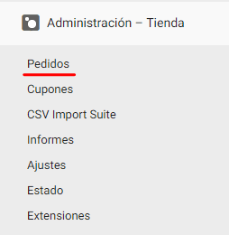 Debemos ir al menú de la columna izquierda: Administración – Tienda > Pedidos«: