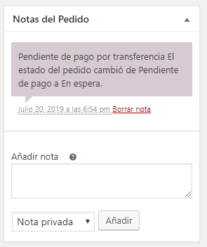 - Privadas (aparecen en gris). Estas son para los administradores de la tienda, y los clientes no las pueden ver. Se usan para aclaraciones internas.
