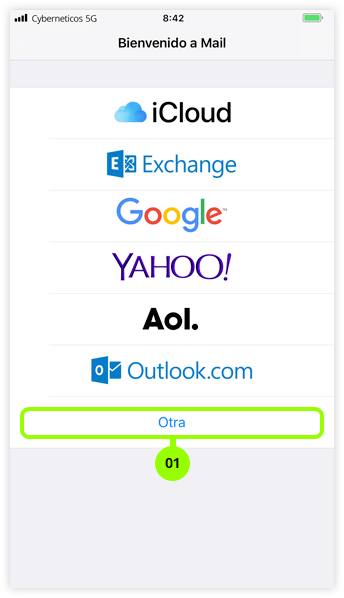 Para comenzar, debemos abrir la herramienta Mail iOS para hacer la configuración del correo electrónico. Después de iniciada nos aparecerá una imagen en la aplicación que nos indica la bienvenida de Mail, donde seleccionaremos Otra.