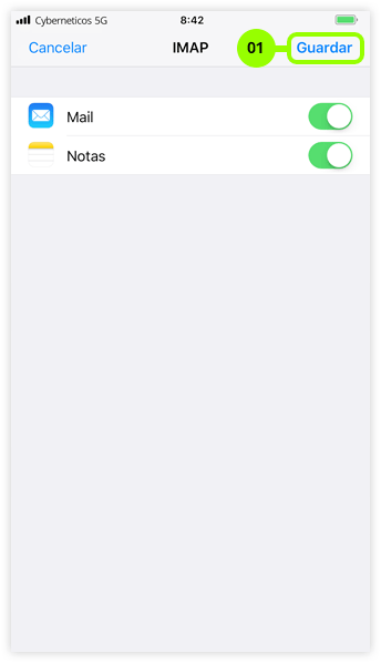 Activamos las opciones Mail y Notas, las cuales son opcionales, y presionamos en Guardar:
