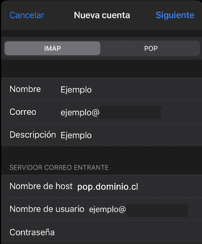 - Contraseña: la contraseña de correo electrónico que utilizas para acceder a tu cuenta de correo.