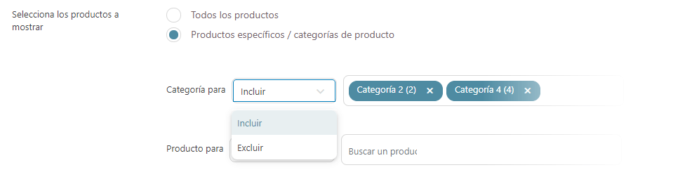 En el siguiente ejemplo, desde este Registro solo puede comprar productos en las categorías Categoría2 y Categoría4 .