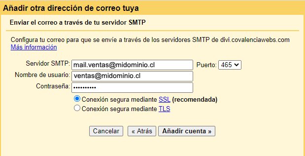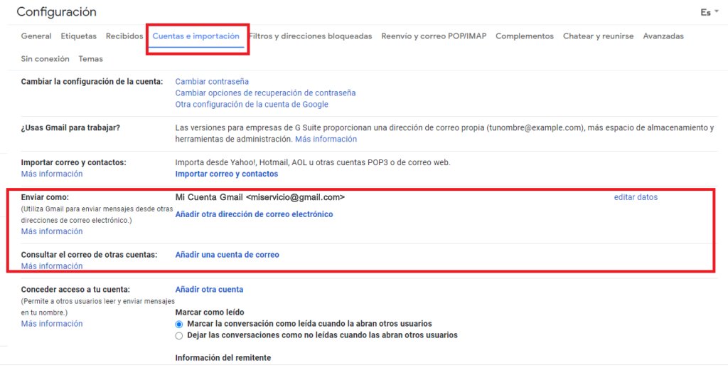 – Enviar como. Donde añadiremos de nuevo nuestro correo corporativo para poder realizar envíos con él desde nuestro Gmail.