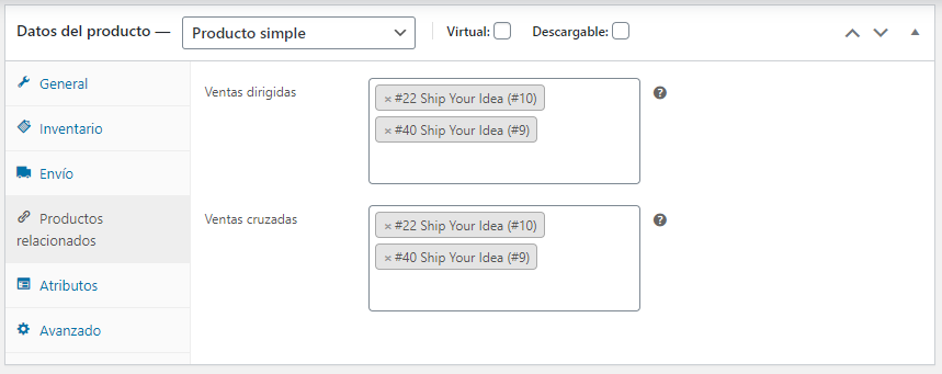 Suelen ser productos más rentables o de mejor calidad o más caros. Dependiendo de la plantilla de tu tema, estos productos se muestran en la página individual del producto debajo de la descripción del producto.