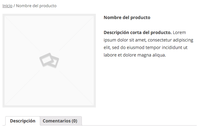Como podemos ver, no puede ser más simple, sólo debemos introducir el título, que será el nombre del producto, y luego lo que será la descripción del producto. Esta es la que se considera «descripción larga», que es la que aparecerá en la pestaña «descripción» en la página de producto: